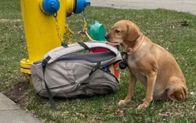 Con su mochila y juguetes, una perrita fue abandonada en la calle en Green Bay, Wisconsin en Estados Unidos.